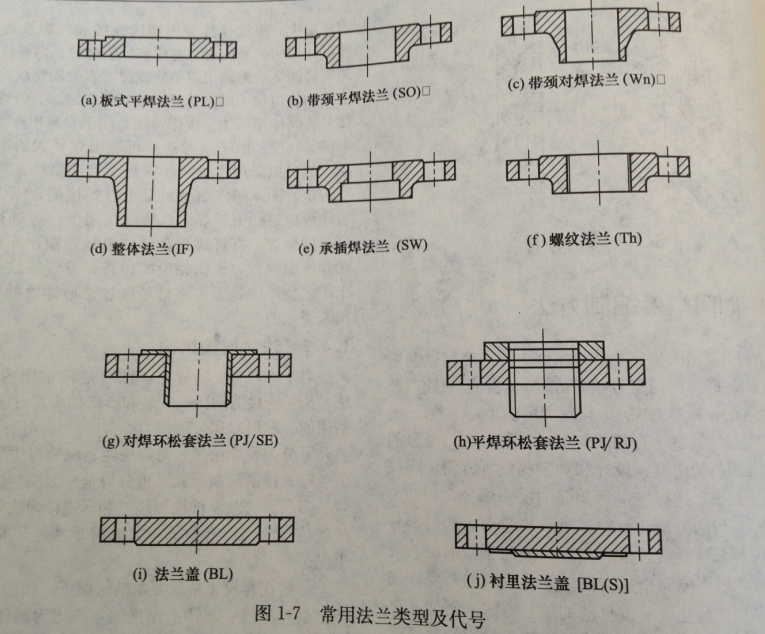 全平面法蘭一般用于低壓鑄鐵、鑄鋼或非金屬閥門中。突面法蘭在中低壓情況下能達(dá)到很好的密封效果,故在客戶無特殊要求時中低壓閥門大多采用突面法蘭。榫槽式法蘭是將平墊片安裝在封閉槽中,這種結(jié)構(gòu)在密封面上,可產(chǎn)生很高的密封比壓,通常遠(yuǎn)遠(yuǎn)超過墊片材料的屈服點,從而保證了可靠的密封性。其缺點是長期使用后,閥門部件維修或更換時,墊片難以從密封槽中取出,如果硬性取出,往往會將密封槽損壞,所以這種法蘭并不是廣泛使用的法蘭類型,它的用途也很有限。凹凸式法蘭是將平墊片安裝在凹面法蘭的密封面內(nèi),與榫槽式密封結(jié)構(gòu)相比,其易于拆卸,其缺點是墊片容易與介質(zhì)接觸,使用在高壓下易被介質(zhì)沖刷、變形,無法起到良好的密封效果,設(shè)計、制造時可根據(jù)實際需要適當(dāng)?shù)丶尤雰?nèi)、外環(huán)、及內(nèi)、外包邊,以提高其密封效果。環(huán)連接面法蘭是在兩個帶有環(huán)型凹槽的突面法蘭中放入一個環(huán)型軟技術(shù)環(huán)墊片,墊片會有輕微的變形以起到密封作用,它廣泛用于高壓和有毒流體管道。常用法蘭密封面類型及代號如圖1-8所示。