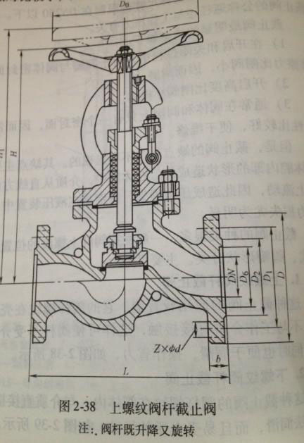 這種截止閥的應(yīng)用較普遍。它的閥桿螺紋在殼體的外面,不與工作介質(zhì)直接接觸,這樣可使閥桿不受介質(zhì)的侵蝕,同時也便于潤滑,操作省力,如圖2-38所示。
