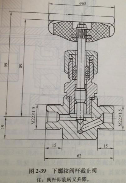 這種截止閥的閥桿螺紋在閥體內(nèi),與介質(zhì)直接接觸,不僅無法潤滑,而且易受介質(zhì)的侵蝕,如圖2-39所示。