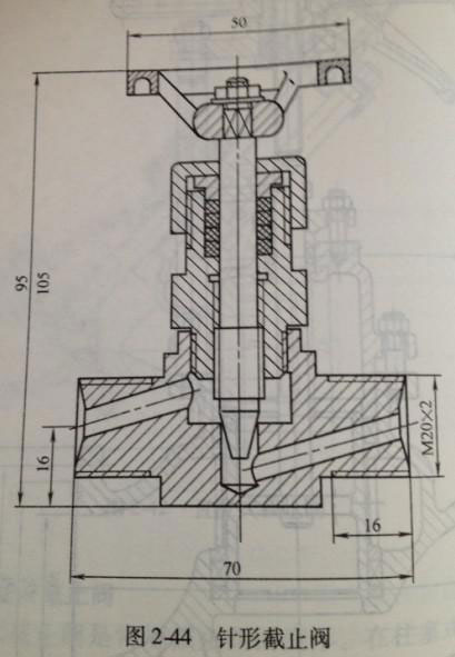 針形截止閥是作為精確流量控制用的,通常僅限用于小口徑,一般閥座孔的尺寸比公稱尺寸小,如圖2-44所示。