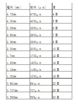 10目等于2.00毫米;12目等于1.70毫米;14目等于1.40毫米;16目等于1.18毫米;18目等于1.00mm;20目等于0.841毫米等等。目數(shù)和毫米有個轉(zhuǎn)換關(guān)系,目數(shù)的概念是這樣產(chǎn)生的:“目”是指每平方英寸上有多少個孔可以同時通過物料,