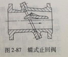 碟式止回閥是閥瓣圍繞閥座內(nèi)的銷軸旋轉(zhuǎn)的止回閥,如圖2-87所示。該種止回閥的機(jī)構(gòu)比較簡(jiǎn)單,但只能安裝在水平管道上,密封性能較差。