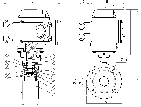 電動(dòng)對(duì)夾式球閥主要零件材料: