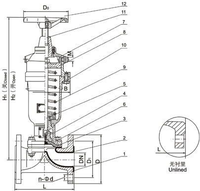 5.本閥由閥體、閥蓋、閥瓣、閥桿、隔膜和其它驅(qū)動(dòng)零件等組成。