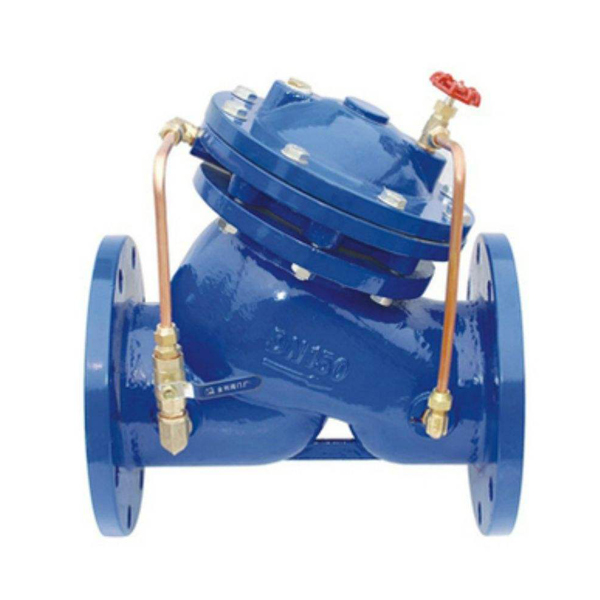 突然的停泵一般會產(chǎn)生巨大的壓力波動。在管道較長的供水系統(tǒng)當中,這種壓力波動往往表現(xiàn)出明顯的低壓段,繼而高壓段激聚出現(xiàn)。低壓控制導(dǎo)閥可感應(yīng)到這種初的壓力波降并自身開啟,以使主閥隨之開啟,從而預(yù)防從系統(tǒng)返回的高壓力波動。開啟的主閥會將隨之而來的高壓力波排至大氣。高壓控制導(dǎo)閥會感應(yīng)到同樣的高壓力波也會開啟并使主閥保持開啟狀態(tài),將過余能量排放掉。一個液控的或機械的流量控制器可限制閥門的開啟。這一裝置能有效地控制壓力波動的釋放并保證主閥及時關(guān)閉,避免額外損失系統(tǒng)壓力。當系統(tǒng)壓力恢復(fù)到高壓控制導(dǎo)閥的設(shè)定值時,導(dǎo)閥本身將會關(guān)閉,導(dǎo)致主閥關(guān)閉,致使系統(tǒng)中的壓力穩(wěn)定在高壓與低壓預(yù)定值之間。
